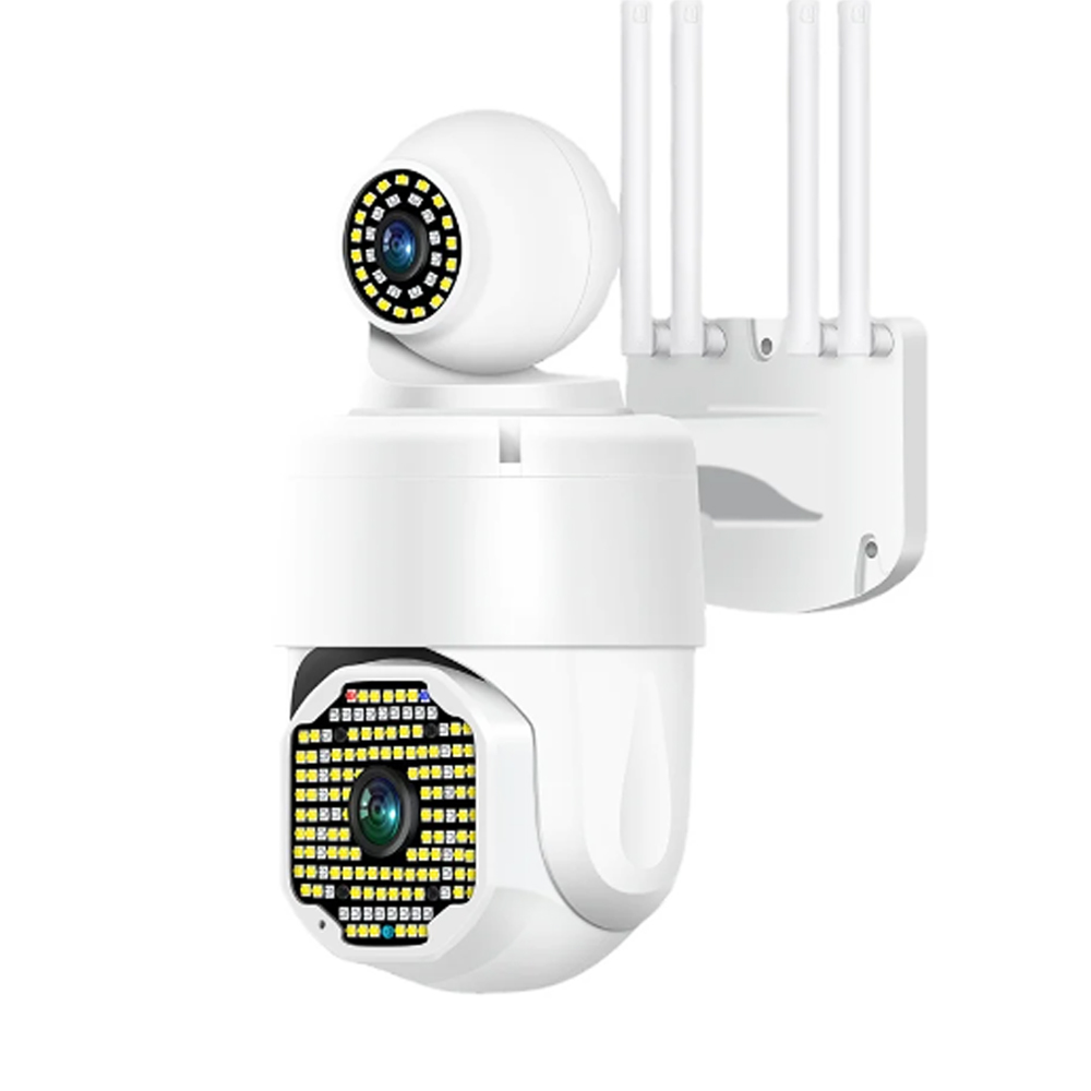 Camara Seguridad Doble Lente Giratoria 360 128GB 4 Antenas SeguimientoC mara WIFI con visi n panor mica de 355 horizontal y 90 vertical Su configuraci n es r pida y sencilla solo necesita colocarla a la altura deseada para obtener una imagen clara Gracias a su carcasa impermeable es resistente y duradera ideal para cualquier entorno La c mara est dise ada en una sola pieza proporcionando una imagen estable incluso en condiciones de poca luz Con ctala a tu tel fono inteligente tableta u otros dispositivos de grabaci n para ver fotos y grabar videos de manera sencilla Adem s soporta almacenamiento mediante tarjeta TF de hasta 128GB no incluida y permite grabaci n de eventos con reproducci n inteligente arrastrando la l nea de tiempo Caracter sticas Resoluci n 2MP ngulo de visi n 355 horizontal 90 vertical Conectividad Inal mbrica Wi Fi 802 11 b g Sensor CMOS Compresi n de v deo H 265 Visi n nocturna Infrarroja LED a todo color Carcasa impermeable y duradera Dise o en una sola pieza para mayor estabilidad Conexi n a dispositivos inteligentes tel fono tableta otros dispositivos de grabaci n Almacenamiento Hasta 128GB con tarjeta TF no incluida Grabaci n de eventos con reproducci n inteligente arrastrando la l nea de tiempo Acceso remoto desde la aplicaci n V380 Pro compatible con Android e iOS Audio bidireccional claro F cil instalaci n Tama o del producto 10 5 x 6 8 x 6 8 cm